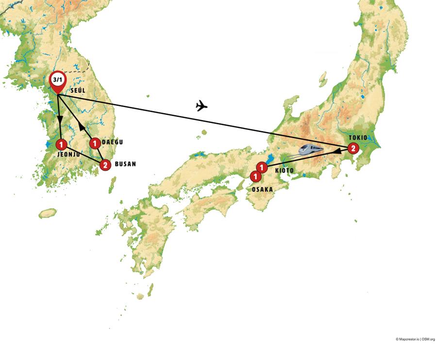 Disfruta de un recorrido grupal en autobús con guía en español durante 13 días, visitando 16 ciudades. Incluye alojamiento en hoteles y desayunos diarios. Turismo guiado por SEÚL, SUWON, JEONJU, DAMYANG, HAEINSA, BUSAN, SEOKGURAM, BULGUKSA, GYEONGJU, DAEGU, ANDONG, HAHOE, TOKIO, KIOTO, NARA, OSAKA.