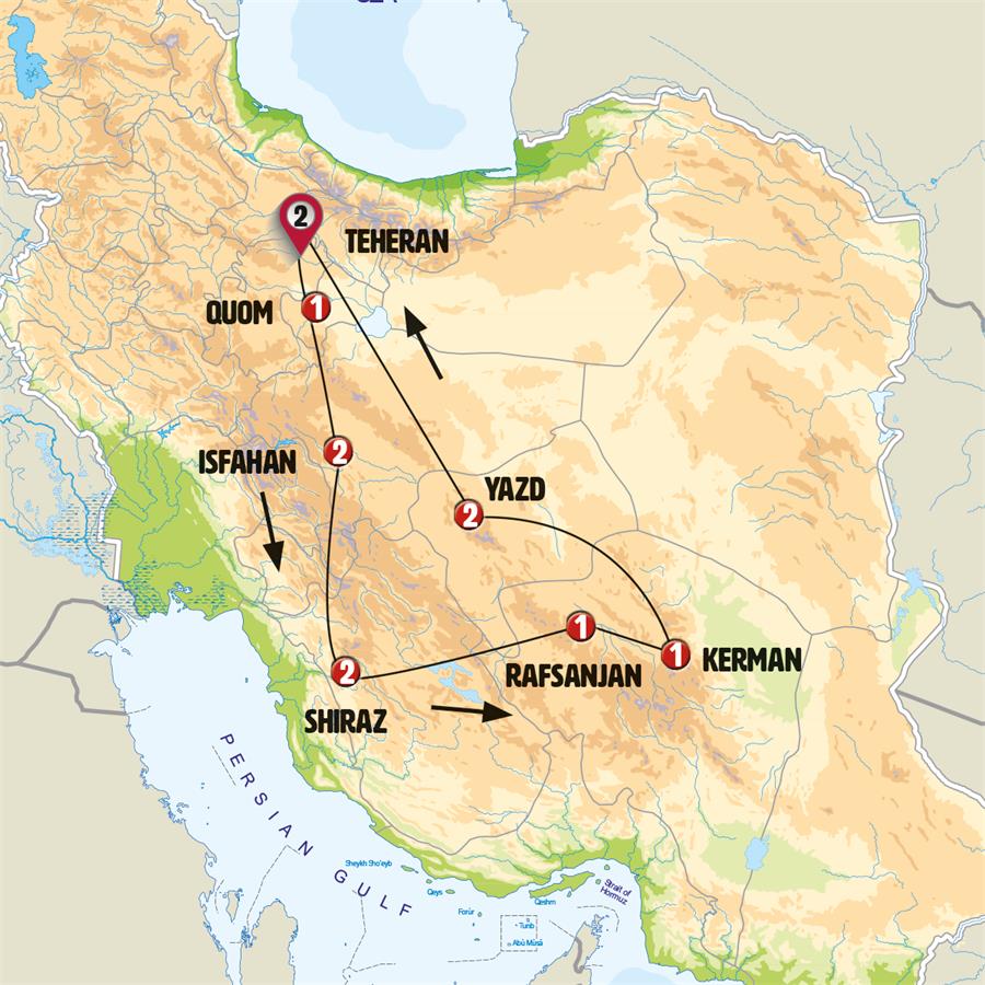 Disfruta de un recorrido grupal en autobús con guía en español durante 13 días, visitando 20 ciudades. Incluye alojamiento en hoteles y desayunos diarios. Turismo guiado por TEHERÁN, MAUSOLEO DEL AYATOLÁ JOMEINI, QOM, KASHAN, CIUDAD SUBTERRÁNEA DE NUSHABAD, CARAVANASERAIL ABOUZEID, ABYANEH, ISFAHÁN, IZADKHAST, QALAT, SHIRAZ, PASARGADA, MEYMAND, RAFSANJAN, MAHAN, KERMÁN, ZEIN-O-DIN CARAVANSERAI, SARYAZD, YAZD, NAIN.