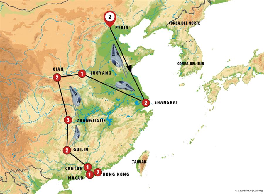 Disfruta de un recorrido grupal en autobús con guía en español durante 17 días, visitando 15 ciudades. Incluye alojamiento en hoteles y desayunos diarios. Turismo guiado por PEKÍN, SHANGHÁI, LUOYANG, LONGMEN, SANMENXIA, XIAN, ZHANGJIAJIE, GUILIN, CRUCERO POR EL RÍO LI, YANGSHUO, HUANGYAO, CANTON, ZHUHAI, MACAO, HONG KONG.